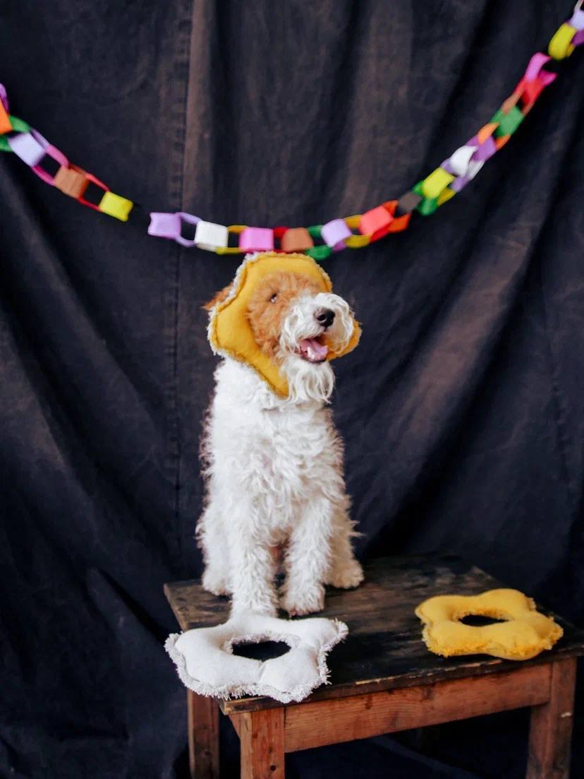Осень в одной игрушке. Бахрома вокруг подарит собаке новое развлечение и поможет чистить зубы благодаря волокнам ткани. Прочность и интерес в одном изделии.